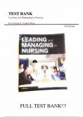 Test Bank - for Leading and Managing in Nursing 7th Edition by Patricia S. Yoder-Wise, All Chapters| Complete Guide A+