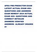 APEA PRE-PREDICTOR EXAM LATEST ACTUAL EXAM 400+ QUESTIONS AND ANSWERS EXAM NEWEST 2024 ACTUAL EXAM 400+QUESTIONS AND CORRECT DETAILED ANSWERS VERIFIED ANSWERSALREADY GRADED A+
