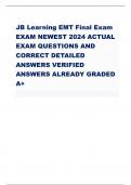 JB Learning EMT Final Exam EXAM NEWEST 2024 ACTUAL EXAMQUESTIONS AND CORRECT DETAILED ANSWERS VERIFIED ANSWERSALREADY GRADED A+