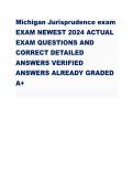 Michigan Jurisprudence exam EXAM NEWEST 2024 ACTUAL EXAM QUESTIONS AND CORRECT DETAILED ANSWERS VERIFIED ANSWERS ALREADY GRADED A+