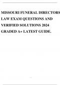 MISSOURI FUNERAL DIRECTORS LAW EXAM QUESTIONS AND VERIFIED SOLUTIONS 2024 GRADED A+ LATEST GUIDE.
