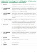 This WGU Clinical Microbiology Final Exam Study Set is designed to help students master essential microbiology concepts required for successful exam performance. It includes verified questions and clearly explained answers covering bacterial, viral, fungal, and parasitic pathogens, infection control, antimicrobial agents, specimen collection, diagnostic testing, and laboratory safety. Aligned with WGU clinical microbiology competencies, this study set supports focused revision, knowledge reinfor...