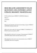 HESI HEALTH ASSESSMENT EXAM QUESTION AND ANSWERS LATEST UPDATE 2024/2025!! NIGHTINGALE