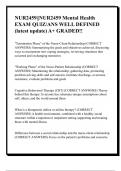 NUR2459||NUR2459 Mental Health EXAM QUIZ/ANS WELL DEFINED (latest update) A+ GRADED!!