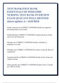 TEST BANK||TEST BANK ESSENTIALS OF PEDIATRIC NURSING TEST BANK OVERVIEW EXAM QUIZ/ANS WELL DEFINED (latest update) A+ ASSURED