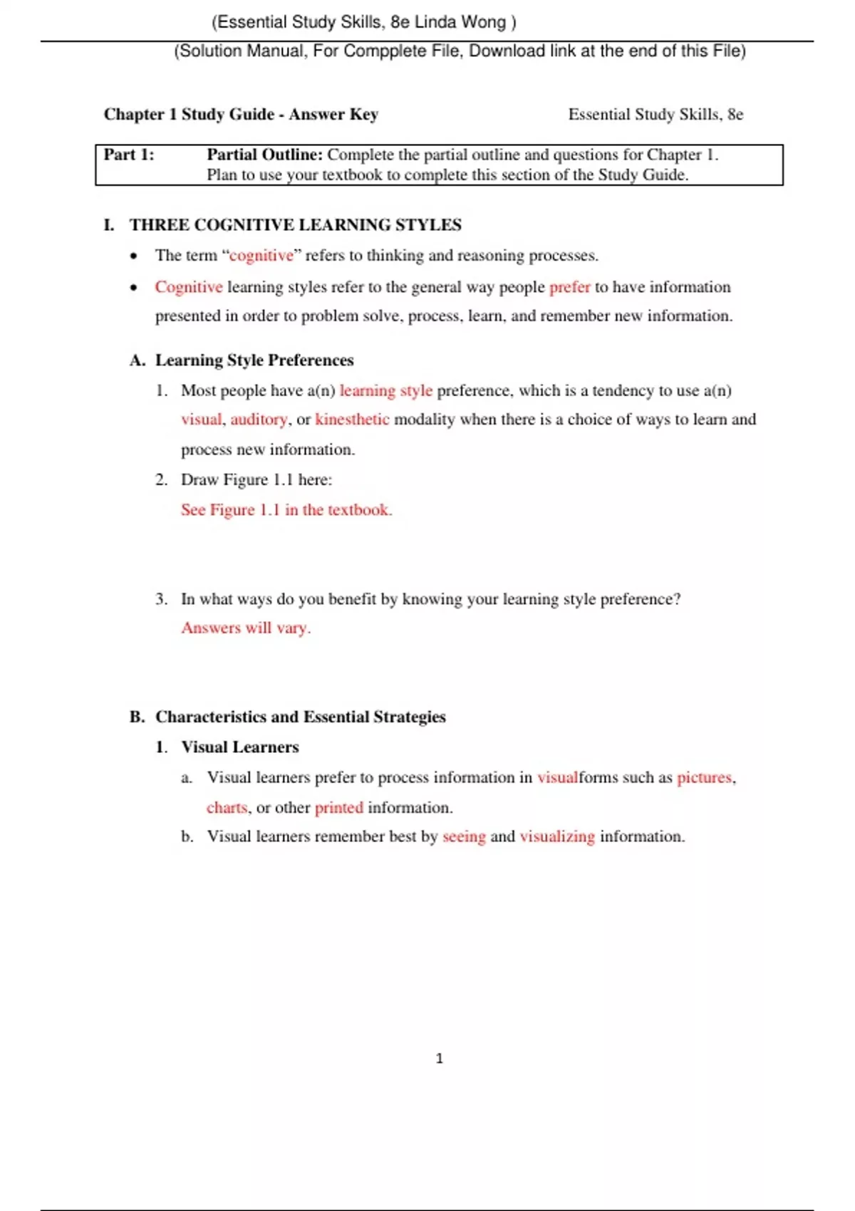 Essential Study Skills, 8e Linda Wong (Solution Manual with Test Bank)