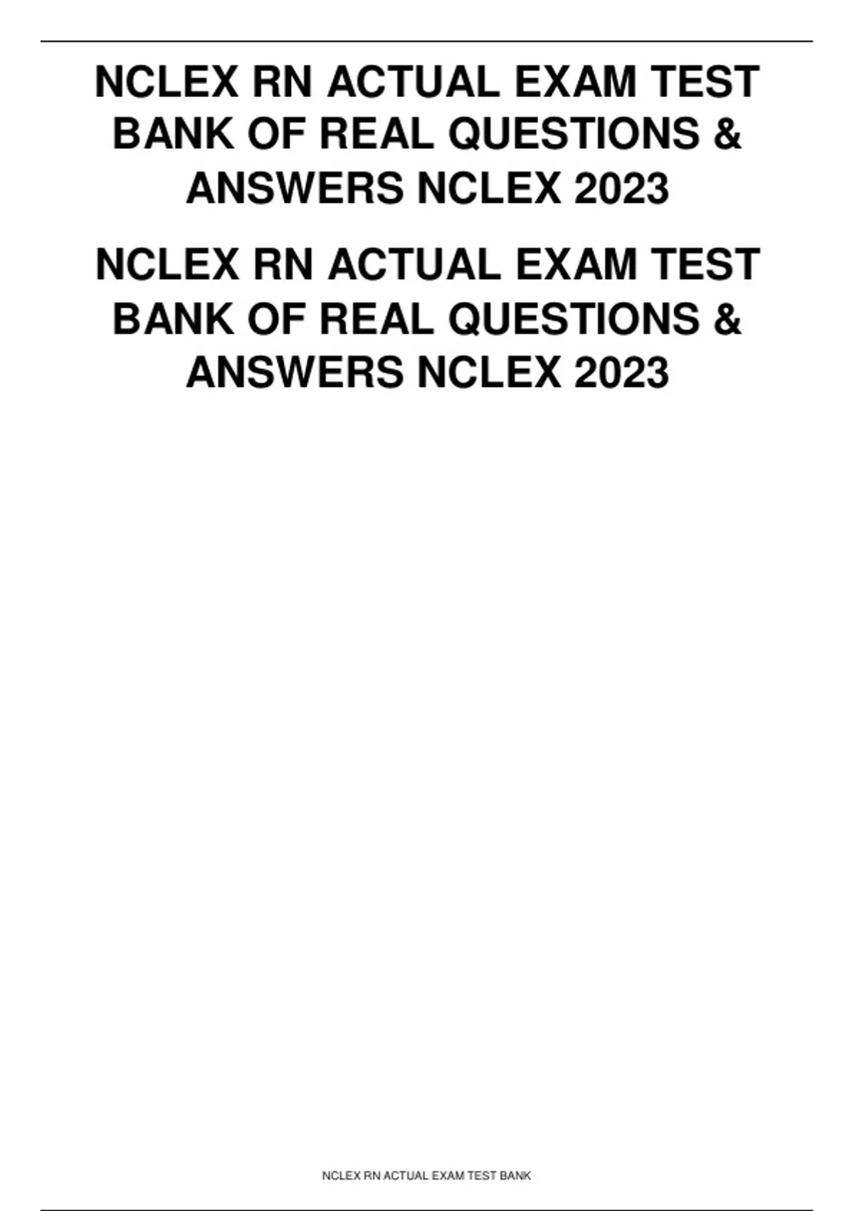 2023 NCLEX RN EXAM TEST BANK 900 ACTUAL EXAM Q&A 100% VERIFIED