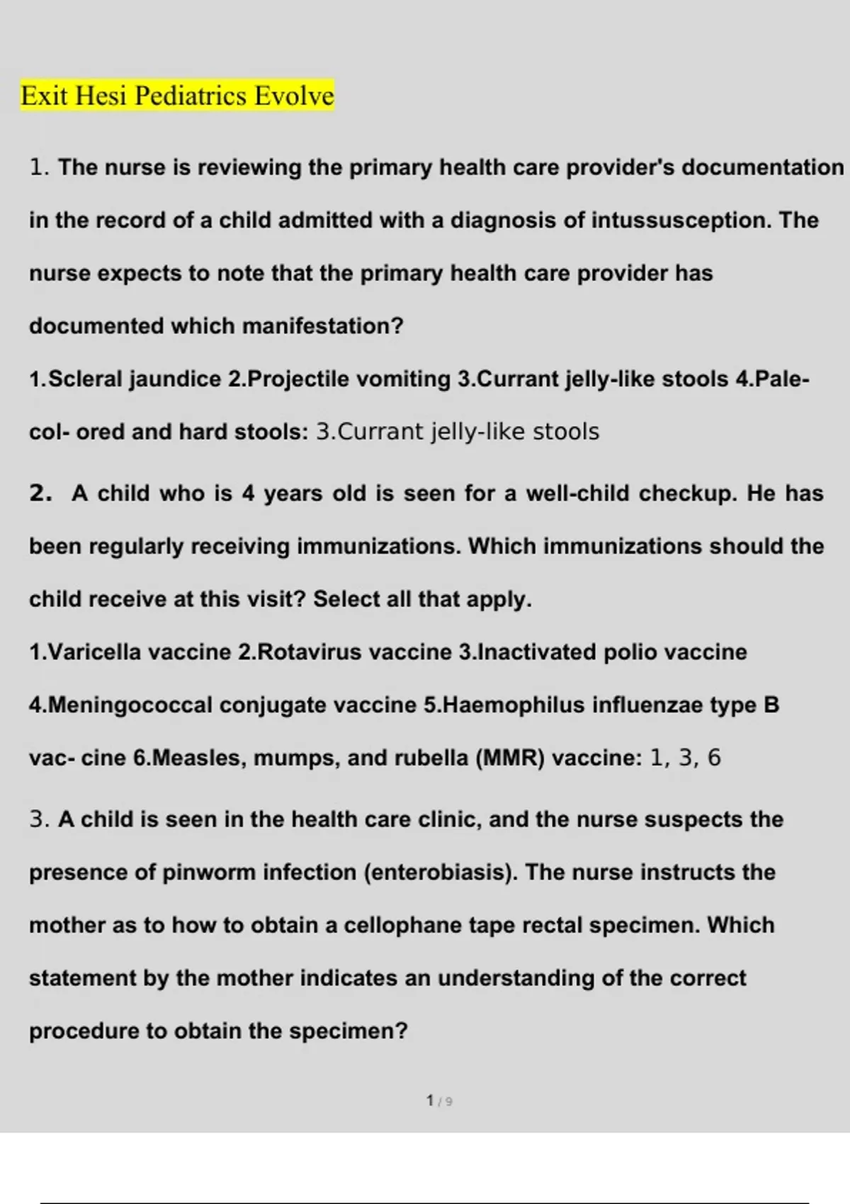 Hesi Exit Evolve Pediatrics Exam Questions and Answers (2022/2023) (Verified Answers)