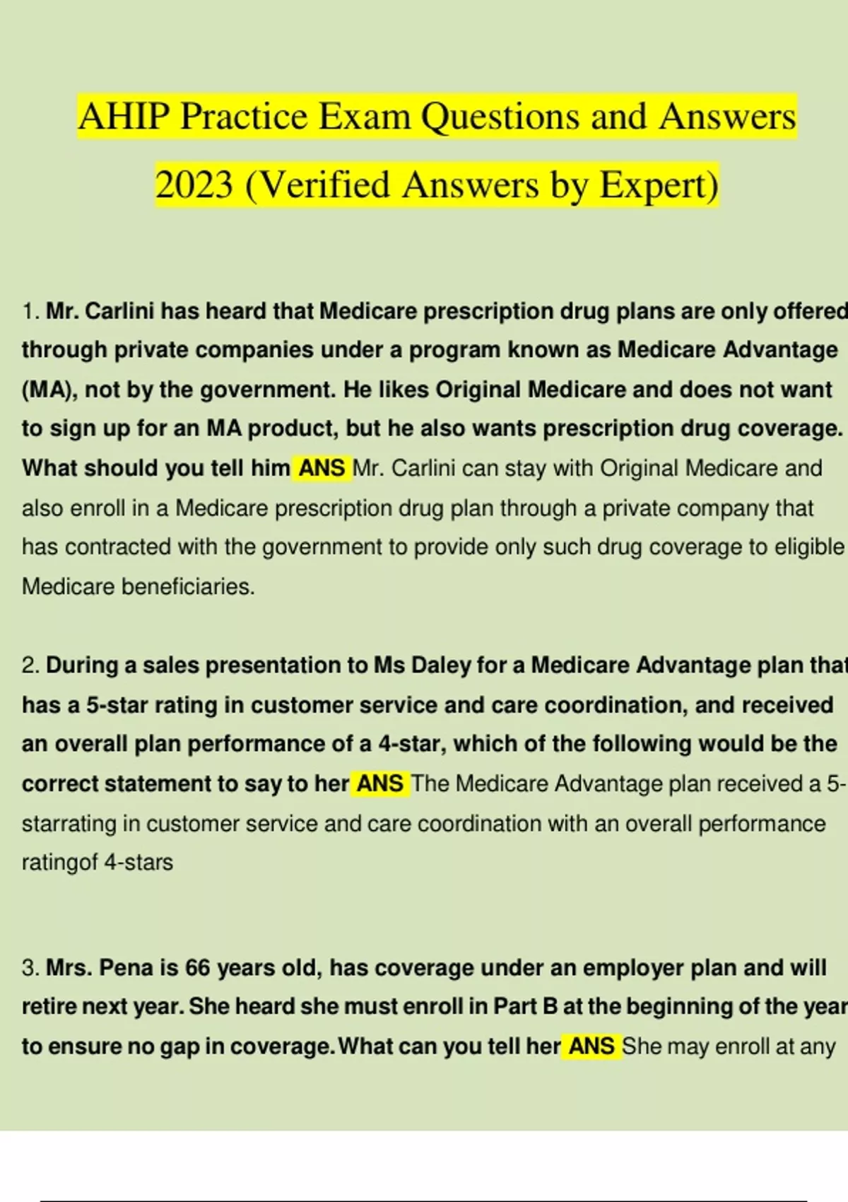 AHIP Practice Exam Questions and Answers (Verified Answers by Expert)