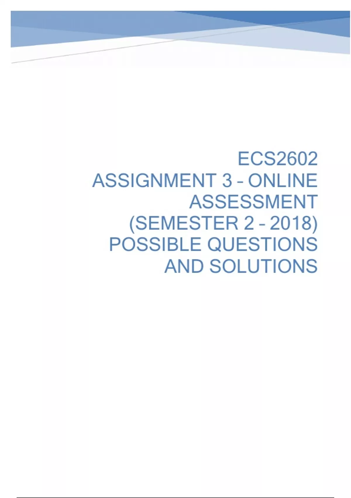 ECS2602 ASSIGNMENT 2,3 SEMESTER 1and 2 assessment solution