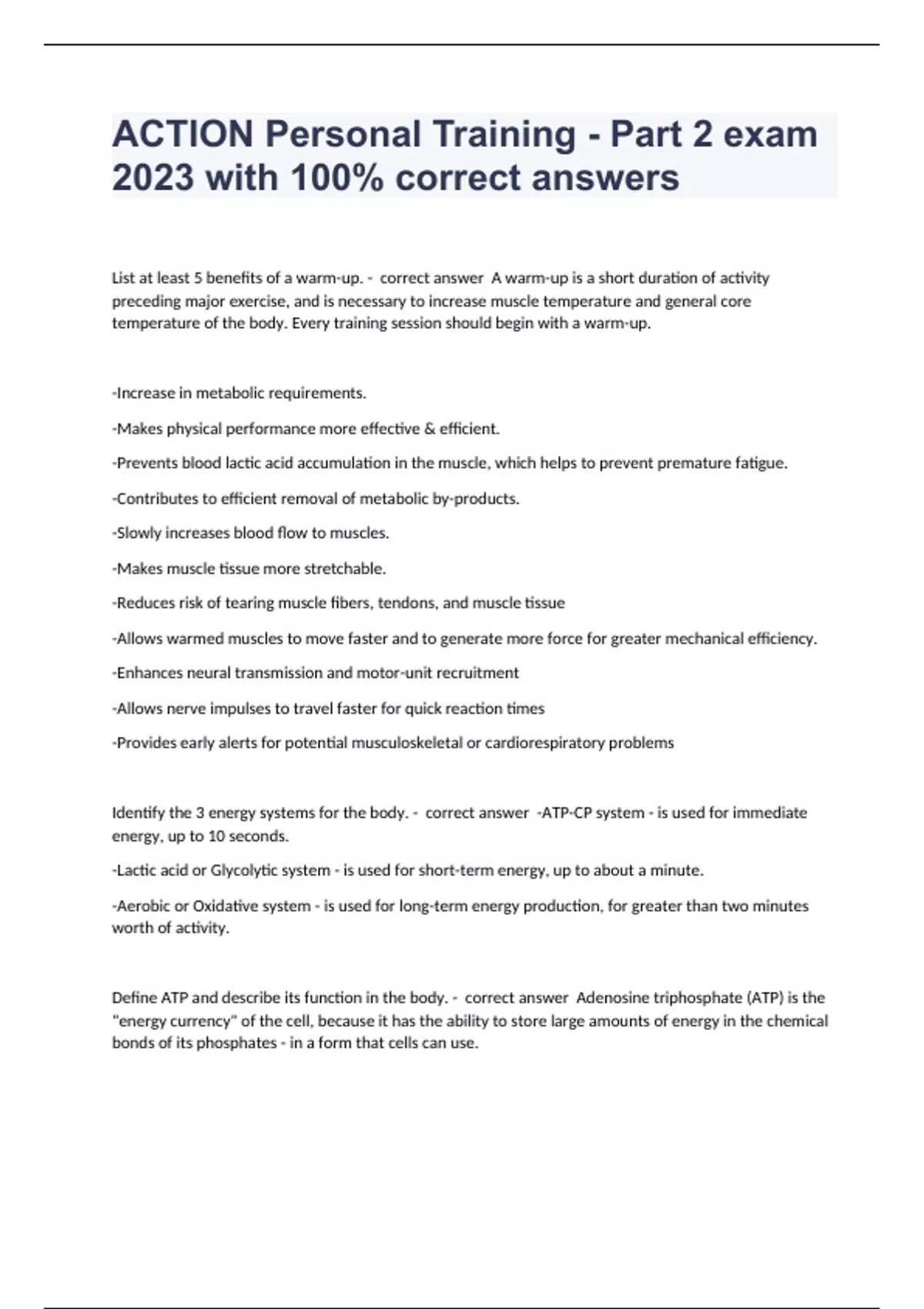 Action CPT exam 2023 with 100% correct answers ACTION PERSONAL TRAINER CERTIFICATION EXAM 2023 WITH 100% CORRECT ANSWERS