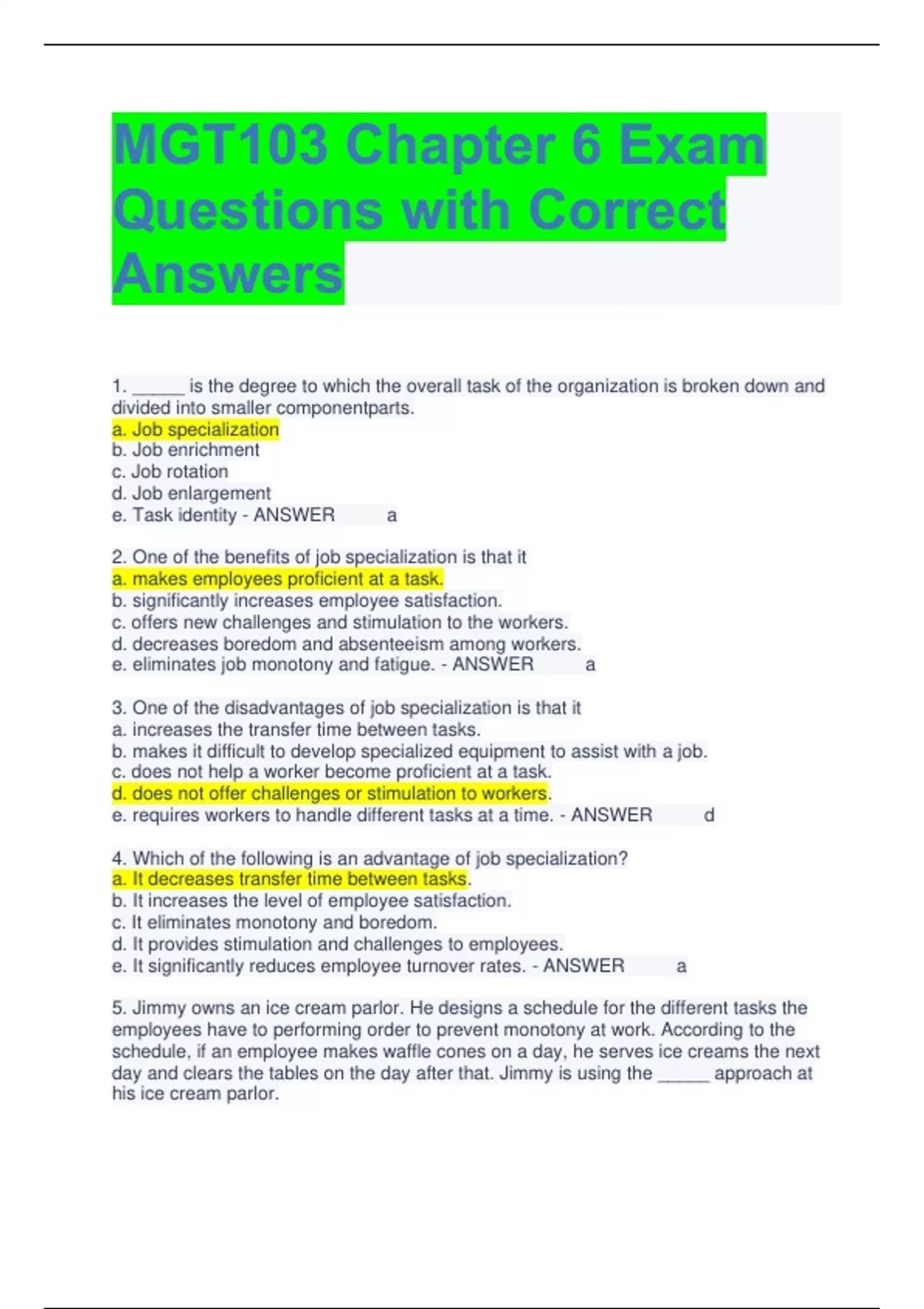 1 Exam (elaborations) MGT103 FULL đpl Exam Questions with Correct Answers 2 Exam (elaborations) MGT103 sụt Exam Questions with All Correct Answers 3 Exam (elaborations) MGT103 FULL FINAL EXAM QUESTIONS WITH COMPLETE SOLUTIONS 4 Exam (elaborations) MGT103 Chapter 6 Exam Questions with Correct Answers