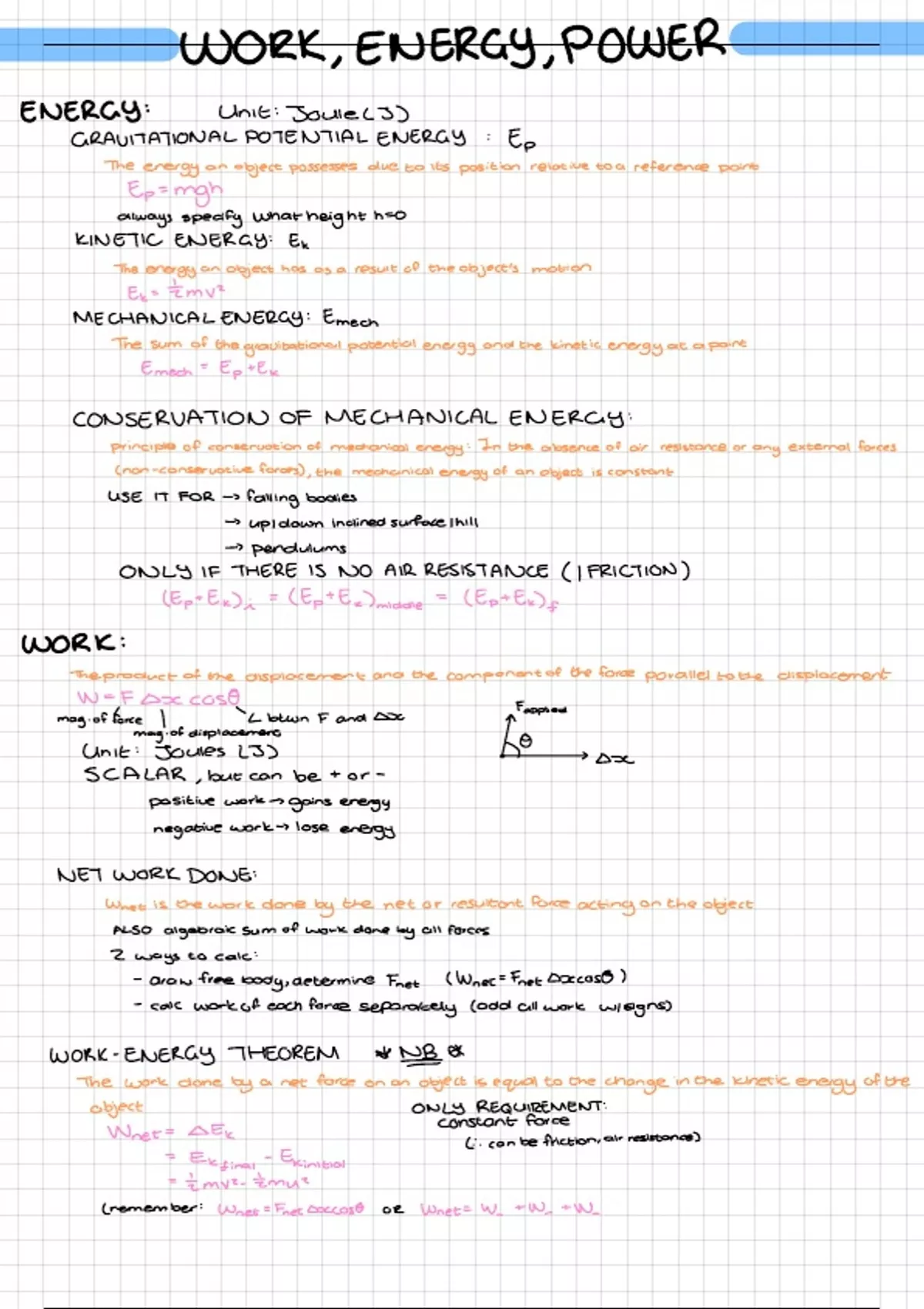 Summary Work, Energy, Power