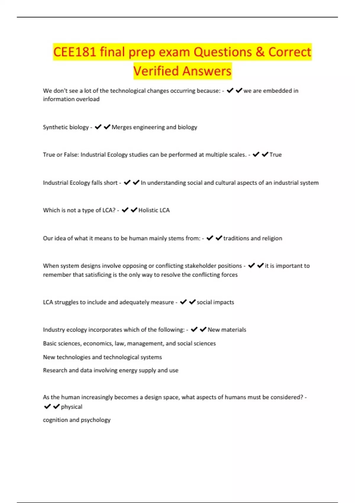 bundle of CEE 181 exams with Questions & Correct Verified Answers