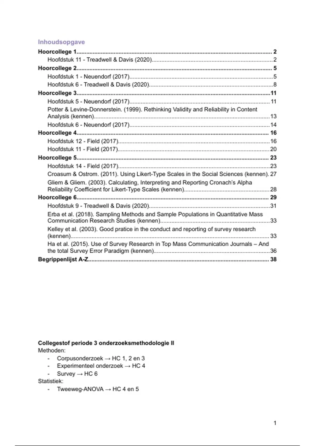 Samenvatting Onderzoeksmethodologie II periode 3 incl. artikelen