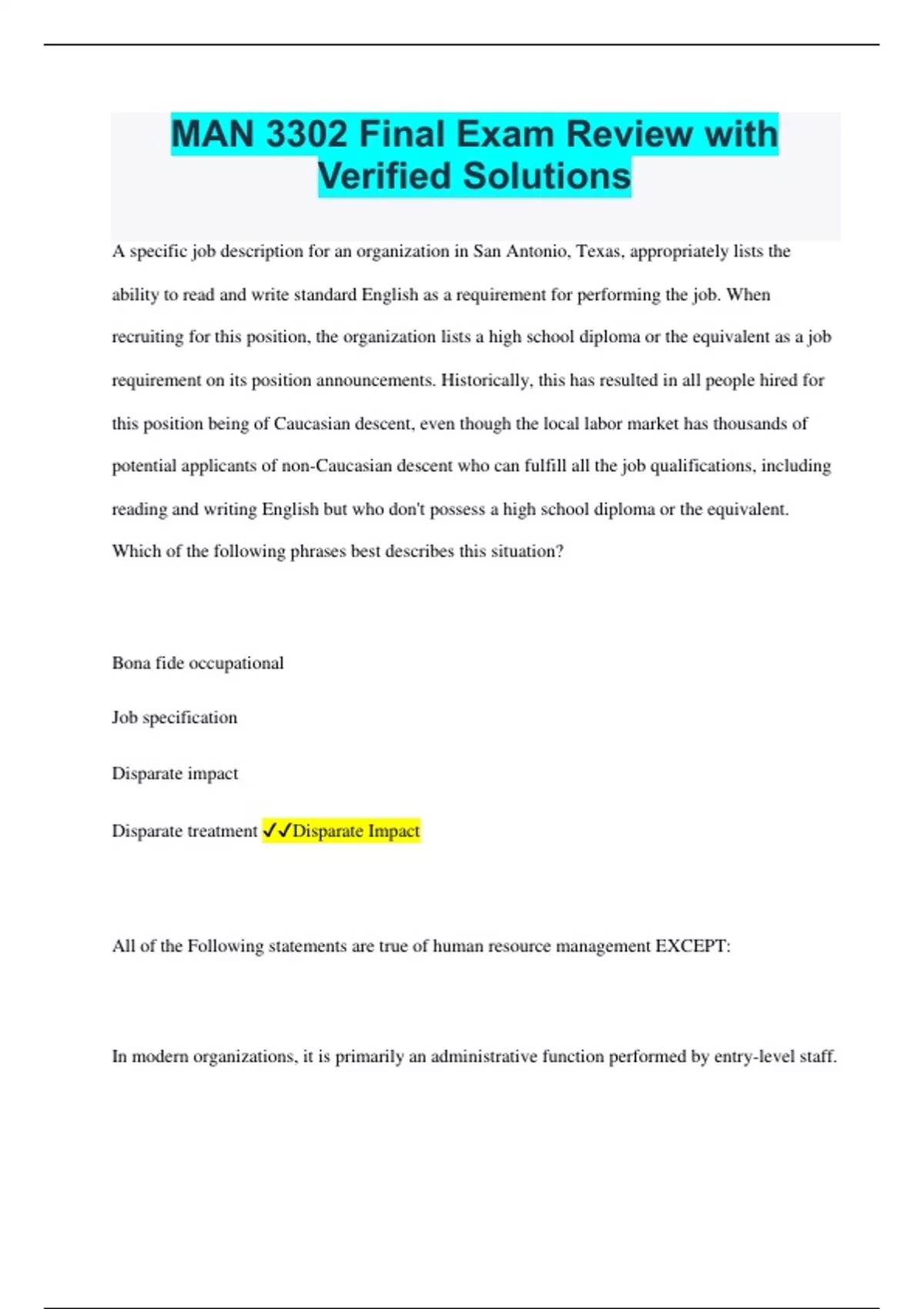 MAN 3302 Bundled Exams Questions and Answers 100% Pass