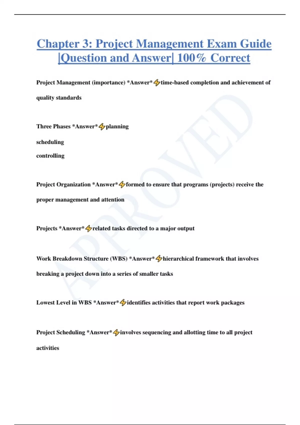 PROJECT MANAGEMENT COMPREHENSIVE TEST BANK |UPDATED|