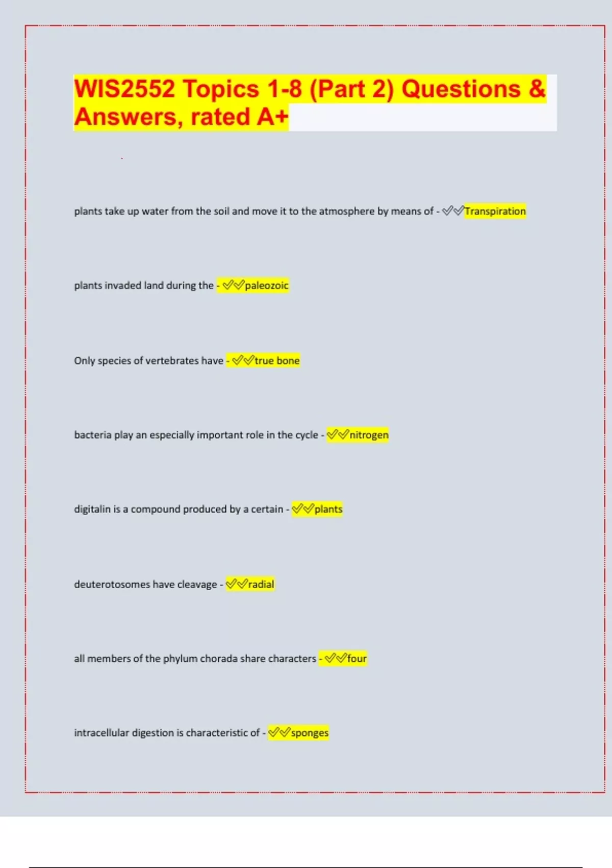 - Wis 2552 exam 1 questions and answers rated a
