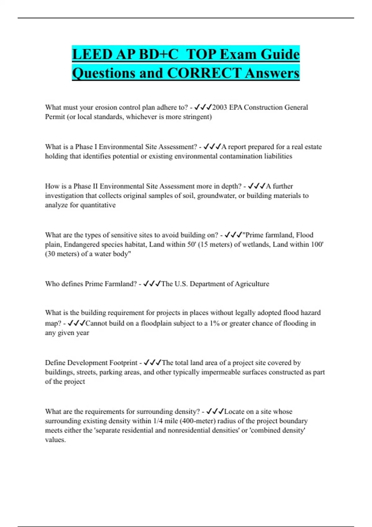 Leed ap bd+c Bundled Exam Questions Package with Correct Answers