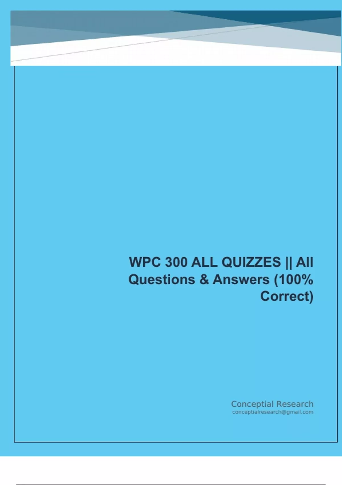 WPC 300 Comprehensive Exam BUNDLE (Package Deal) || With Complete Questions & Solutions (Graded A+) WPC 300 Comprehensive Exam BUNDLE (Package Deal) || With Complete Questions & Solutions (Graded A+)