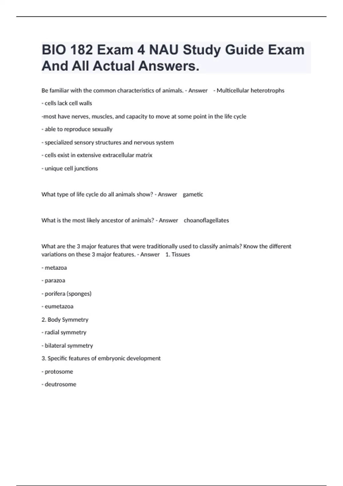 1 Exam (elaborations) Biology 182 ASU Test Exam 1 Questions And 100% Correct Answers. 2 Exam (elaborations) BIO 182 Study Guide Exam 1 Questions With Complete Solutions. 3 Exam (elaborations) BIO 182 Prep Exam 2 Questions And 100% Accurate Answers. 4 Exam (elaborations) BIO 182 Practice Exam 1 Questions And Answers Guaranteed Pass.