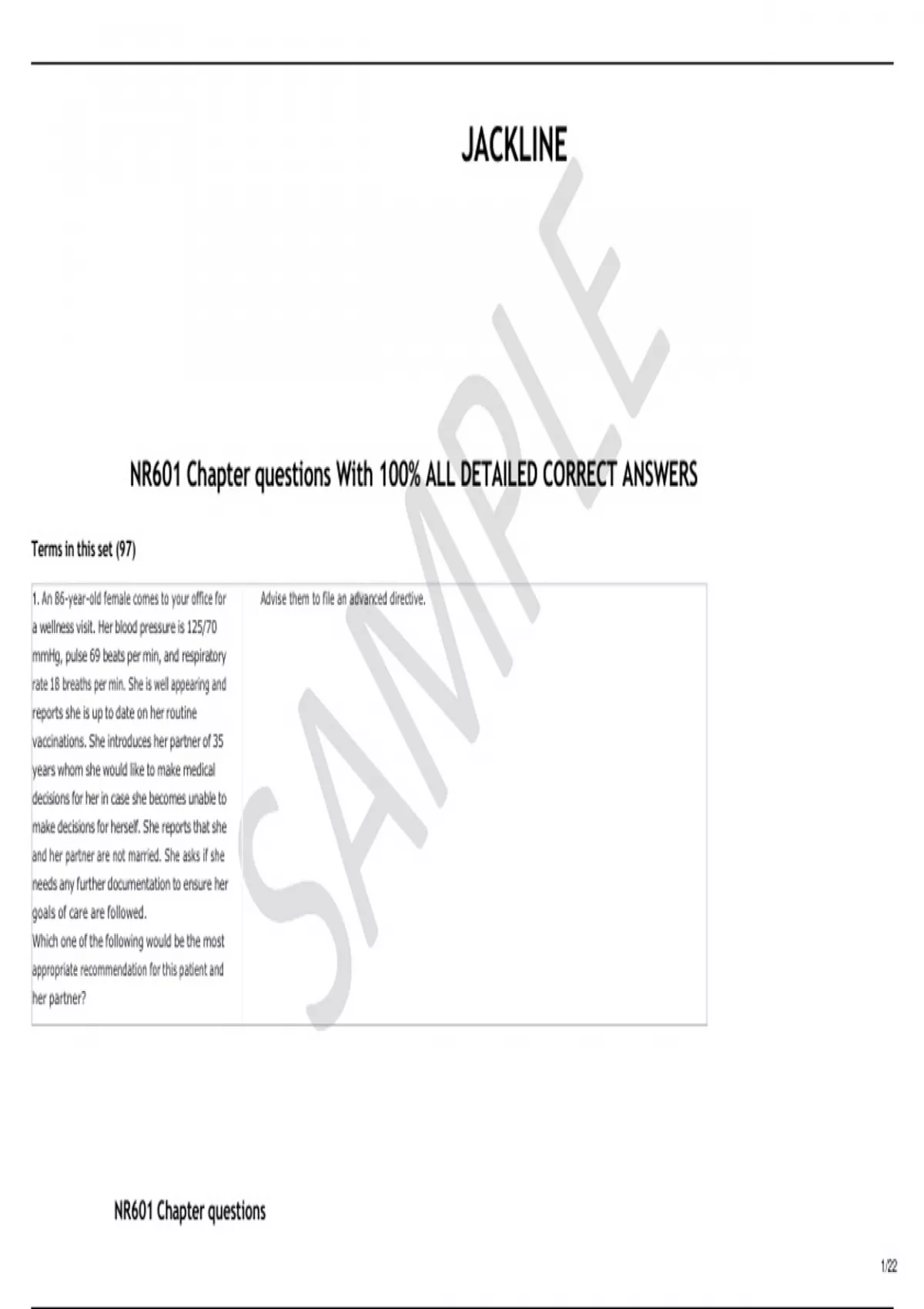 NR601 Chapter questions With 100% ALL DETAILED CORRECT ANSWERS NR601 Chapter questions With 100% ALL DETAILED CORRECT ANSWERS