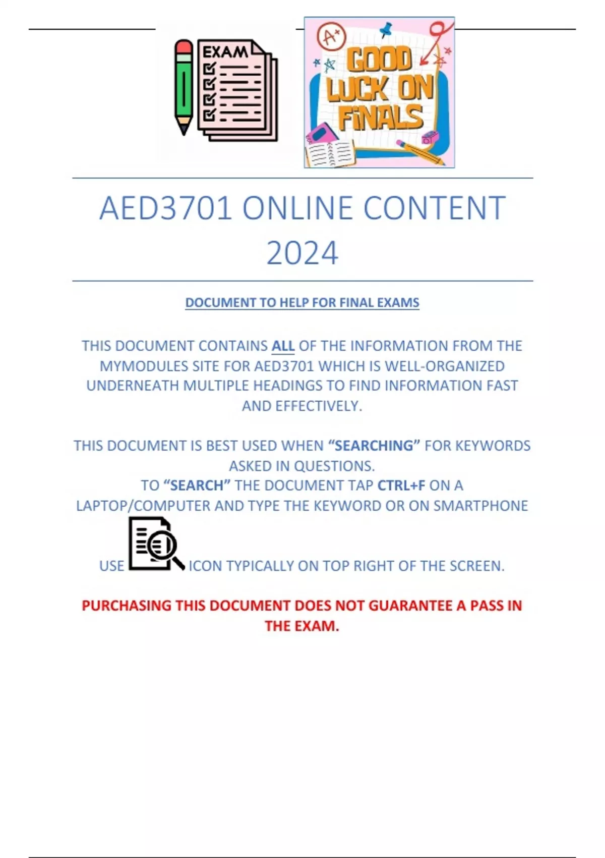 AED3701 Online Content & Multiple Choice Questions/Answers
