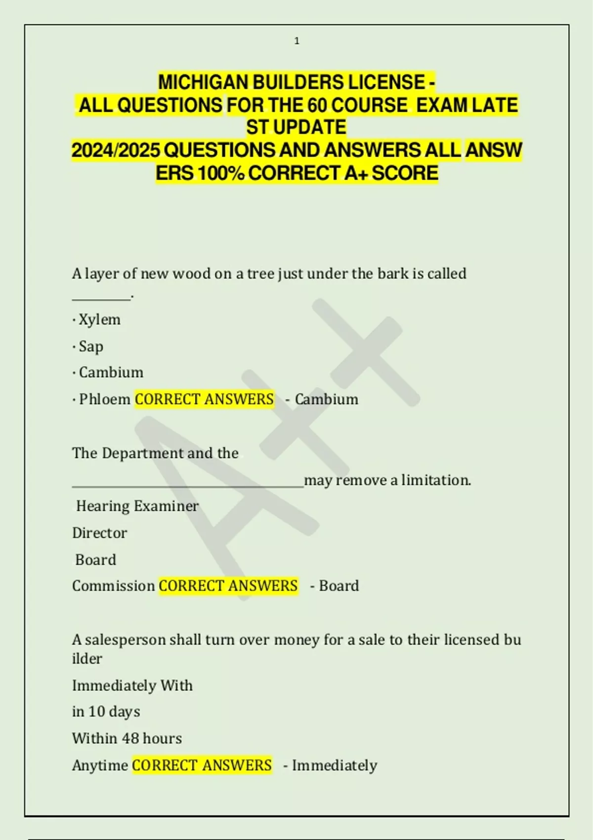 2025 MICHIGAN BUILDERS LICENSE EXAM TESTBANK , PRACTICE EXAM AND A LATEST UPDATED STUDY GUIDE COMPLETE 800 ACTUAL QUESTIONSAND CORRECT DETAILED ANSWERS