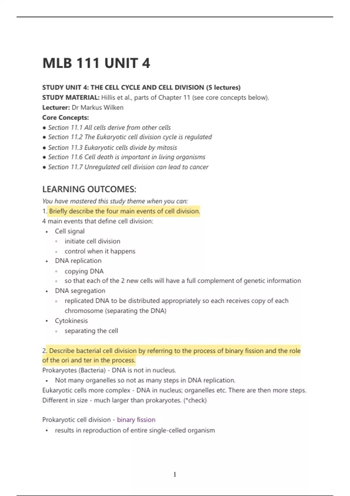 Summaries and practice questions (and answers) to MLB 111 units 4-6 (semester test 2 and University of Pretoria). These summaries have the information that got me a distinction.