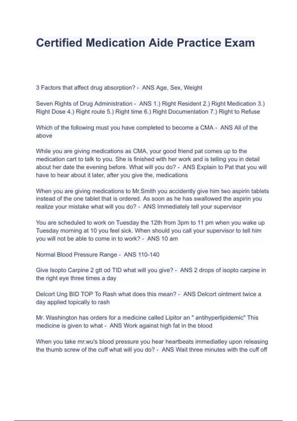 MEDICATION AIDE QUESTIONS AND ANSWERS 2023 (100% VERIFIED)