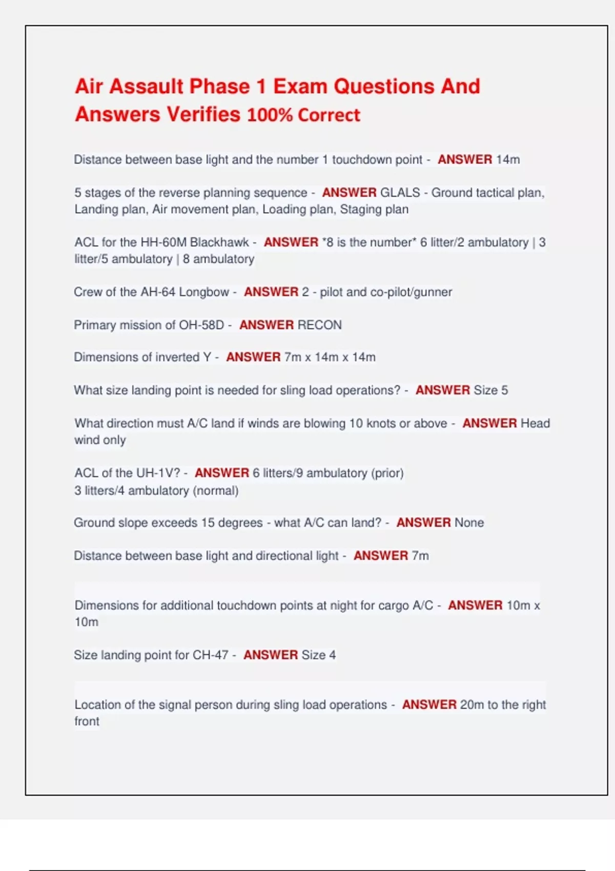 Air Assault Phase 1&2 Exam Bundle| Questions And Answers Verified 100% Correct|