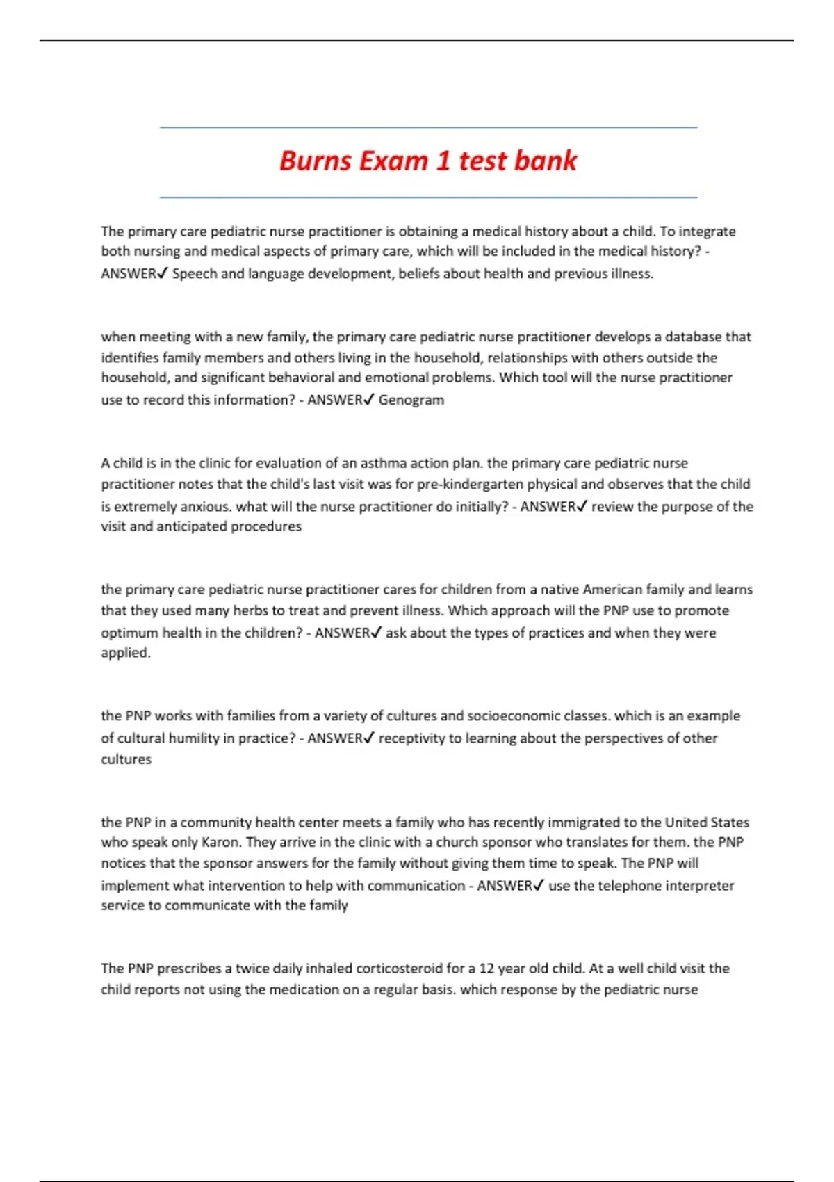 Exam 1 Burns Pediatric Primary Care Test Bank – Verified Pediatric Nursing Questions 2025/2026