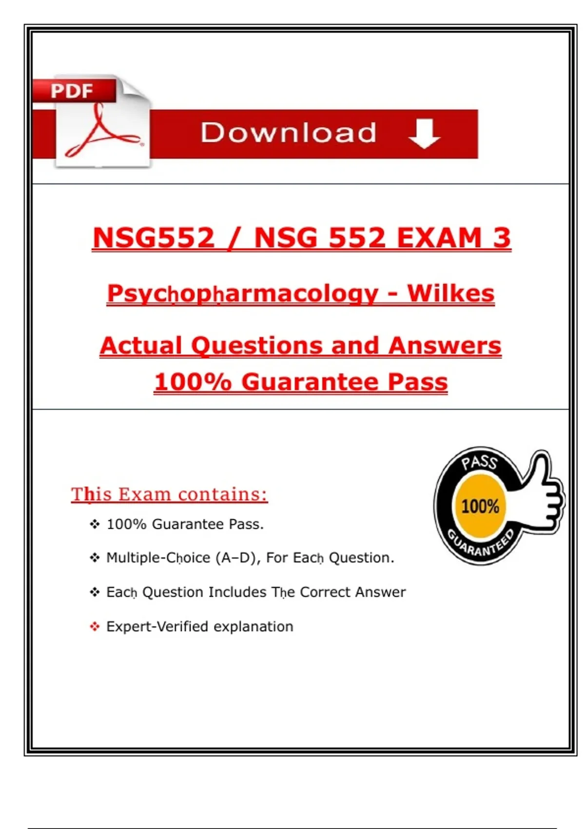 (Exams 1, 2, & 3) NSG 552 (Exam & Study Guide ) Psychopharmacology – Wilkes University