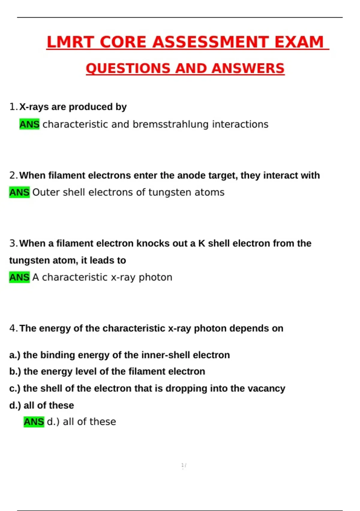 LMRT BUNDLED EXAMS & TESTS LMRT Core Assessment Exam LMRT ARRT EXAM LMRT State Review Exam LMRT State Exam Prep (Latest 2025 / 2026 Update) Questions and Verified Answers | 100% Correct | Grade A+