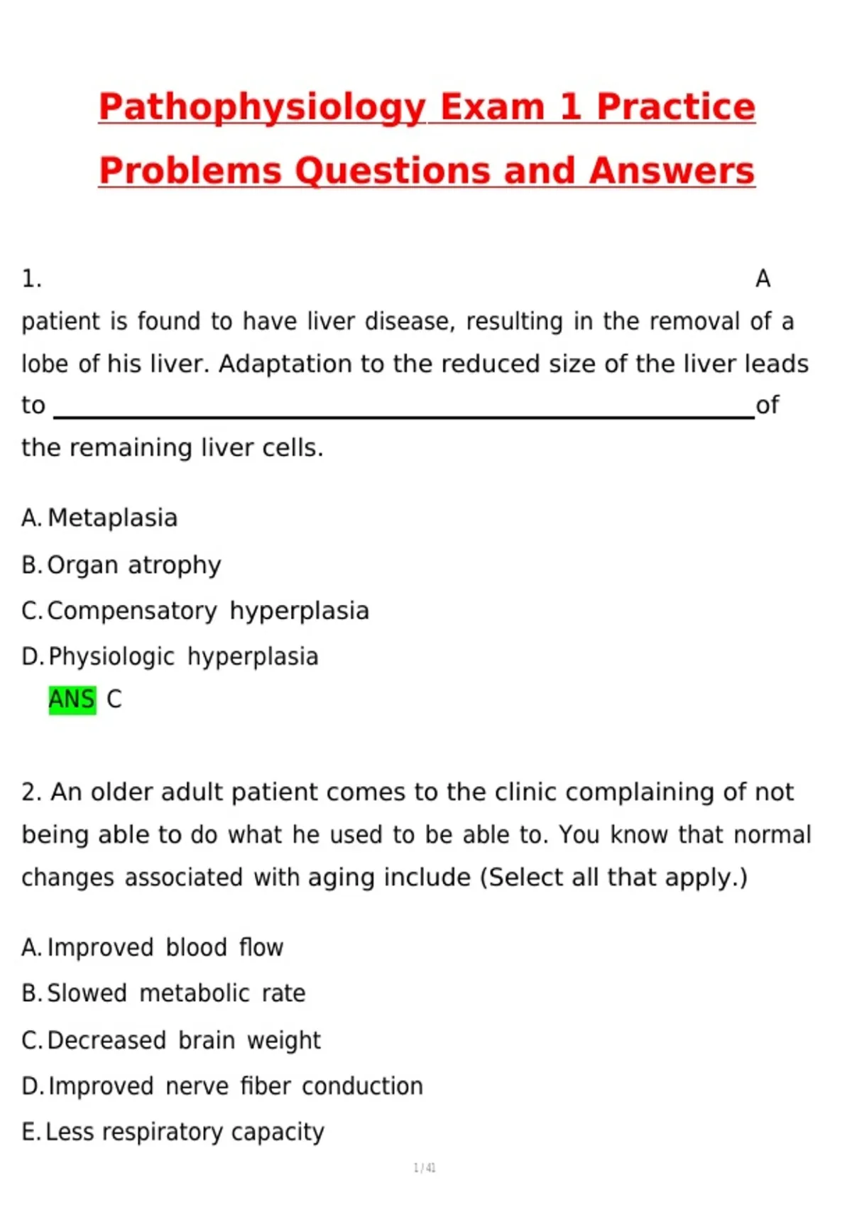 Pathophysiology Exam 1 Complete Bundle 2026/2027 Portage, UTA, UT Tyler, South College, Rasmussen, Chamberlin Actual Questions & Verified Answers Pathophysiology Exam 1 (Practice ATI Questions) Actual 2026 Questions and Verified Answers (Newest 2026 / 202