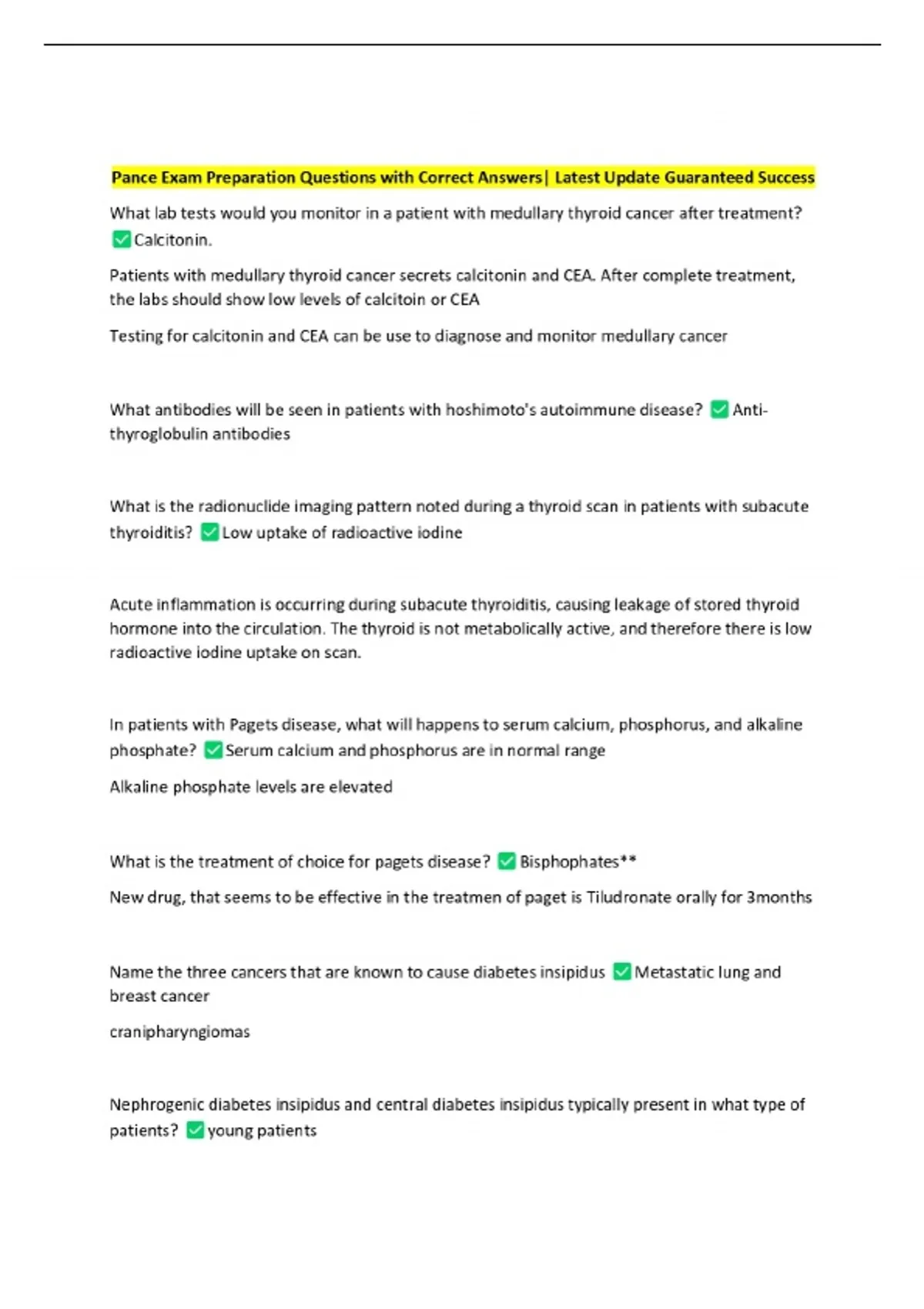 Pance Exam Preparation Questions with Correct Answers| Latest Update