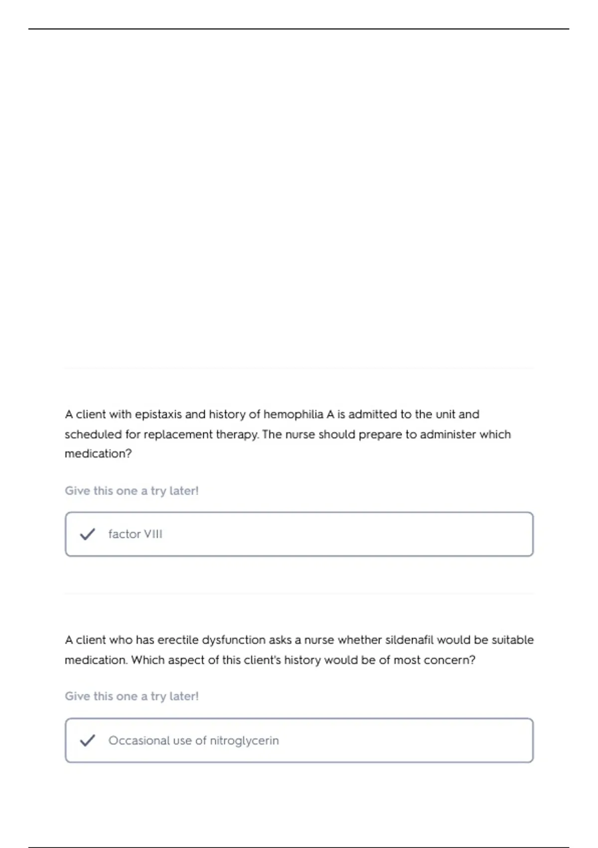 A client who has erectile dysfunction asks a nurse whether sildenafil would be suitable
