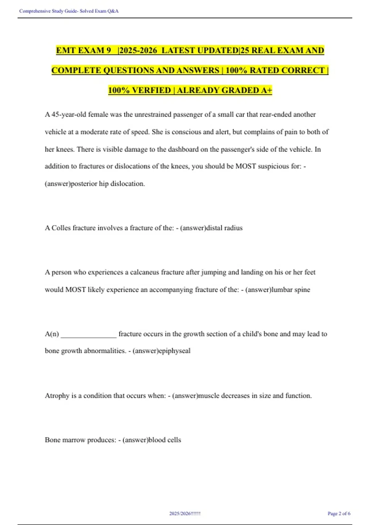 EMT Exam 9 2025/ 2026 | 25 Real Exam Questions and Verified Answers 100% Correct