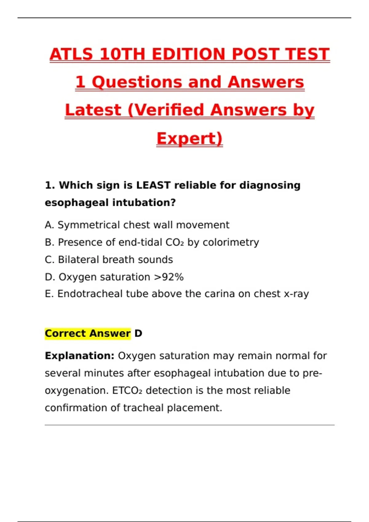 Correct Answer D