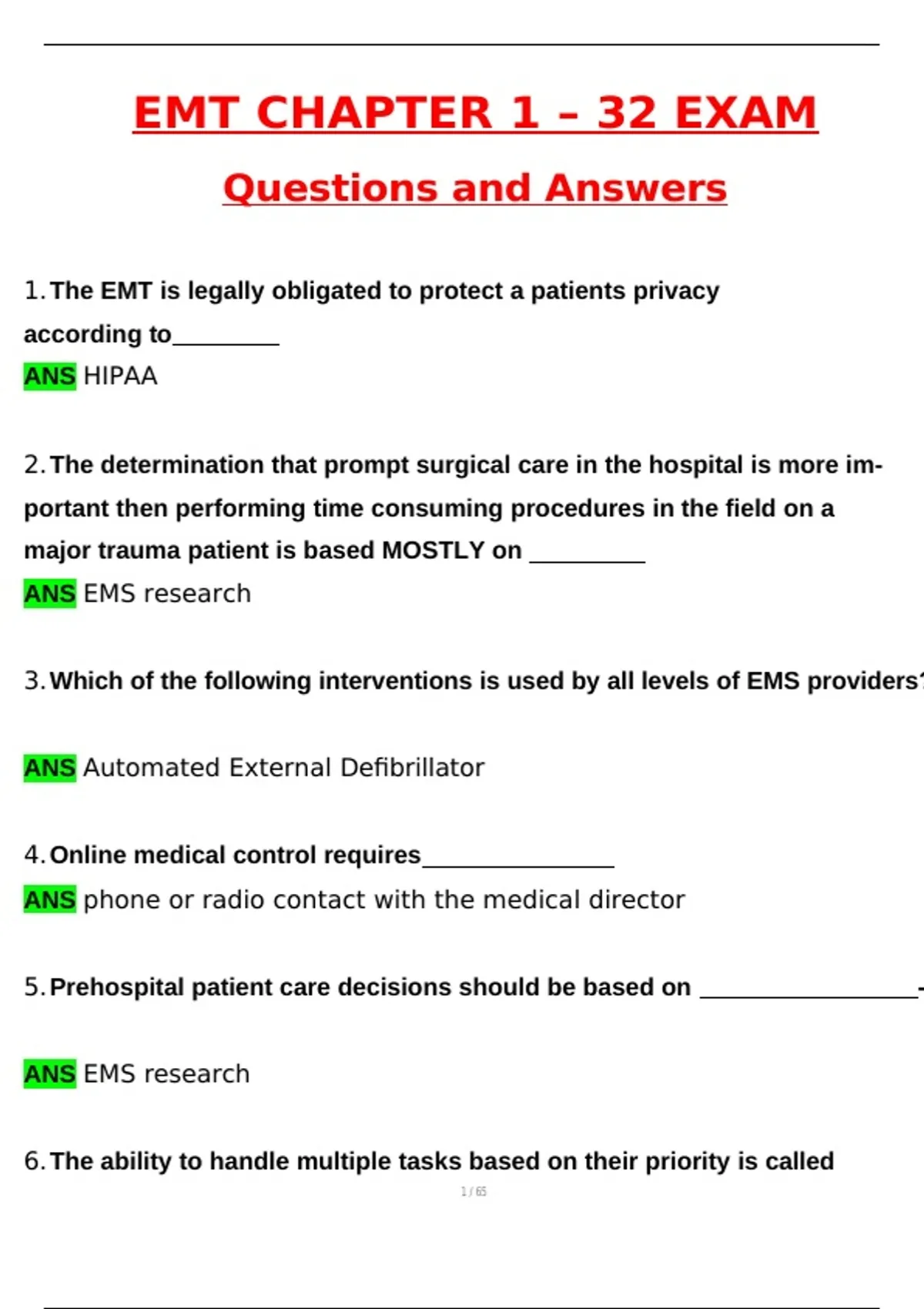 1.The EMT is legally obligated to protect a patients privacy