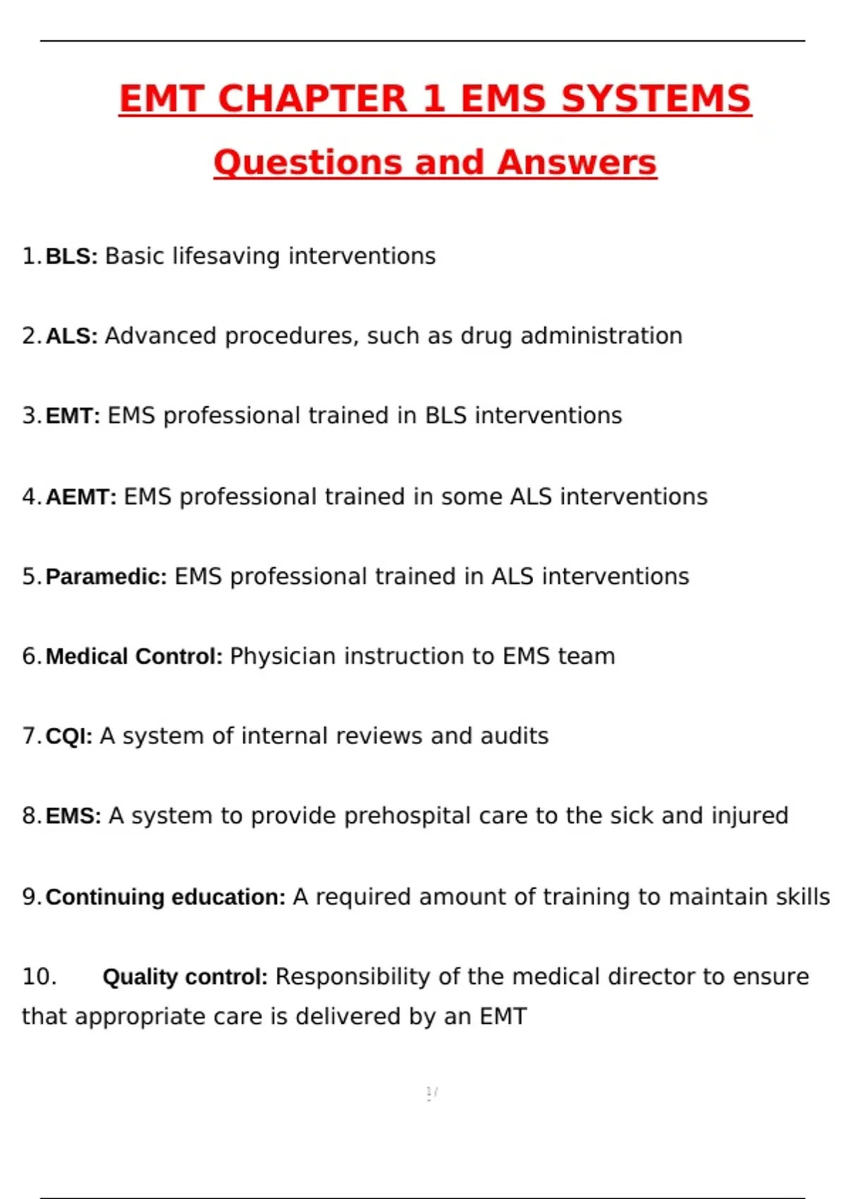 5.Paramedic: EMS professional trained in ALS interventions