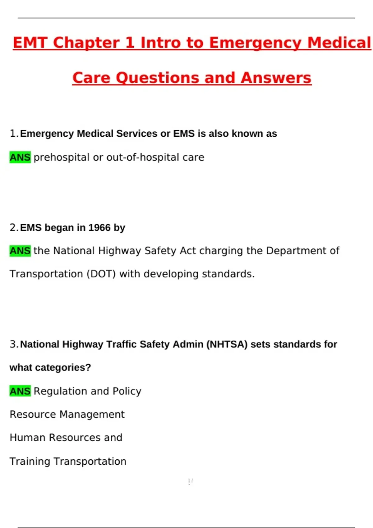 EMT Chapter 1 Intro to Emergency Medical Care Latest 2026 Actual Questions and Verified Answers (2026 / 2027) A+ Grade 100% Guarantee Verified by Experts EMT exam questions and correct answers, EMT practice test with answers, EMT 2025 exam prep, EMT 2026 updated study guide, EMT Block 1 triage quiz answers, EMT triage practice questions, EMT Chapters 1–32 study guide, EMT Exam 1 Chapters 1–5 questions, EMT Exam 1 practice questions, EMT HOSA EMT practice exam, EMT medical practice exam questions, EMT anatomy and physiology exam review, EMT medical terminology practice questions, EMT patient assessment Chapter 10 questions, EMT primary and secondary assessment exam, EMT emergency medical care fundamentals, EMT EMS systems Chapter 1 review, EMT intro to emergency medical care exam, EMT vital signs practice questions, EMT airway management exam prep, EMT oxygen therapy questions, EMT bleeding and shock practice, EMT trauma assessment exam prep, EMT medical emergencies practice questions, EMT pediatric patient assessment review, EMT geriatric care exam questions, EMT obstetric emergencies practice, EMT EMS operations exam review, EMT ambulance operations questions, EMT legal and ethical issues EMT exam, EMT documentation and reporting practice, EMT infection control exam questions, EMT anatomy physiology EMT test prep, EMT pharmacology basics exam review, EMT medication administration questions, EMT triage tagging practice exam, EMT disaster response questions, EMT mass casualty incidents exam, EMT NREMT practice questions, EMT cognitive exam prep 2025, EMT psychomotor exam review, EMT skills exam practice, EMT written EMT exam questions, EMT mock exam with rationales, EMT study guide PDF download, EMT exam cram review, EMT high-yield EMT questions, EMT full course review study guide, EMT comprehensive practice exam, EMT latest exam questions 2025, EMT verified answers study guide, EMT full practice and prep guide EMT Block 1 triage quiz, EMT triage practice questions, EMT Chapter 1 to 32 study guide, EMT exam questions and correct answers, EMT Chapter 1 EMS systems review, EMT intro to emergency medical care exam, EMT patient assessment Chapter 10 questions, EMT Exam 1 Chapters 1–5 practice, EMT Exam 1 questions and answers, EMT HOSA practice questions, EMT medical practice exam, EMT anatomy and physiology review, EMT medical terminology exam questions, EMT full EMT exam prep 2025, EMT updated study guide 2026, EMT practice test with answers, EMT certification exam prep, EMT first responder exam questions, EMT emergency care fundamentals review, EMT trauma assessment practice, EMT medical assessment exam prep, EMT scene size up questions, EMT primary assessment practice, EMT secondary assessment review, EMT vital signs practice questions, EMT airway management exam prep, EMT oxygen therapy questions