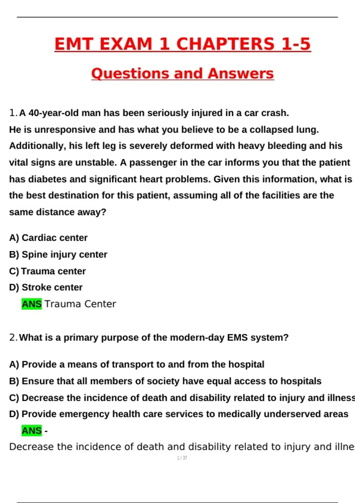 EMT Exam 1 Chapters 1-5 Latest 2026 Actual Questions and Verified Answers (2026 / 2027) A+ Grade 100% Guarantee Verified by Experts EMT exam questions and correct answers, EMT practice test with answers, EMT 2025 exam prep, EMT 2026 updated study guide, EMT Block 1 triage quiz answers, EMT triage practice questions, EMT Chapters 1–32 study guide, EMT Exam 1 Chapters 1–5 questions, EMT Exam 1 practice questions, EMT HOSA EMT practice exam, EMT medical practice exam questions, EMT anatomy and physiology exam review, EMT medical terminology practice questions, EMT patient assessment Chapter 10 questions, EMT primary and secondary assessment exam, EMT emergency medical care fundamentals, EMT EMS systems Chapter 1 review, EMT intro to emergency medical care exam, EMT vital signs practice questions, EMT airway management exam prep, EMT oxygen therapy questions, EMT bleeding and shock practice, EMT trauma assessment exam prep, EMT medical emergencies practice questions, EMT pediatric patient assessment review, EMT geriatric care exam questions, EMT obstetric emergencies practice, EMT EMS operations exam review, EMT ambulance operations questions, EMT legal and ethical issues EMT exam, EMT documentation and reporting practice, EMT infection control exam questions, EMT anatomy physiology EMT test prep, EMT pharmacology basics exam review, EMT medication administration questions, EMT triage tagging practice exam, EMT disaster response questions, EMT mass casualty incidents exam, EMT NREMT practice questions, EMT cognitive exam prep 2025, EMT psychomotor exam review, EMT skills exam practice, EMT written EMT exam questions, EMT mock exam with rationales, EMT study guide PDF download, EMT exam cram review, EMT high-yield EMT questions, EMT full course review study guide, EMT comprehensive practice exam, EMT latest exam questions 2025, EMT verified answers study guide, EMT full practice and prep guide EMT Block 1 triage quiz, EMT triage practice questions, EMT Chapter 1 to 32 study guide, EMT exam questions and correct answers, EMT Chapter 1 EMS systems review, EMT intro to emergency medical care exam, EMT patient assessment Chapter 10 questions, EMT Exam 1 Chapters 1–5 practice, EMT Exam 1 questions and answers, EMT HOSA practice questions, EMT medical practice exam, EMT anatomy and physiology review, EMT medical terminology exam questions, EMT full EMT exam prep 2025, EMT updated study guide 2026, EMT practice test with answers, EMT certification exam prep, EMT first responder exam questions, EMT emergency care fundamentals review, EMT trauma assessment practice, EMT medical assessment exam prep, EMT scene size up questions, EMT primary assessment practice, EMT secondary assessment review, EMT vital signs practice questions, EMT airway management exam prep, EMT oxygen therapy questions