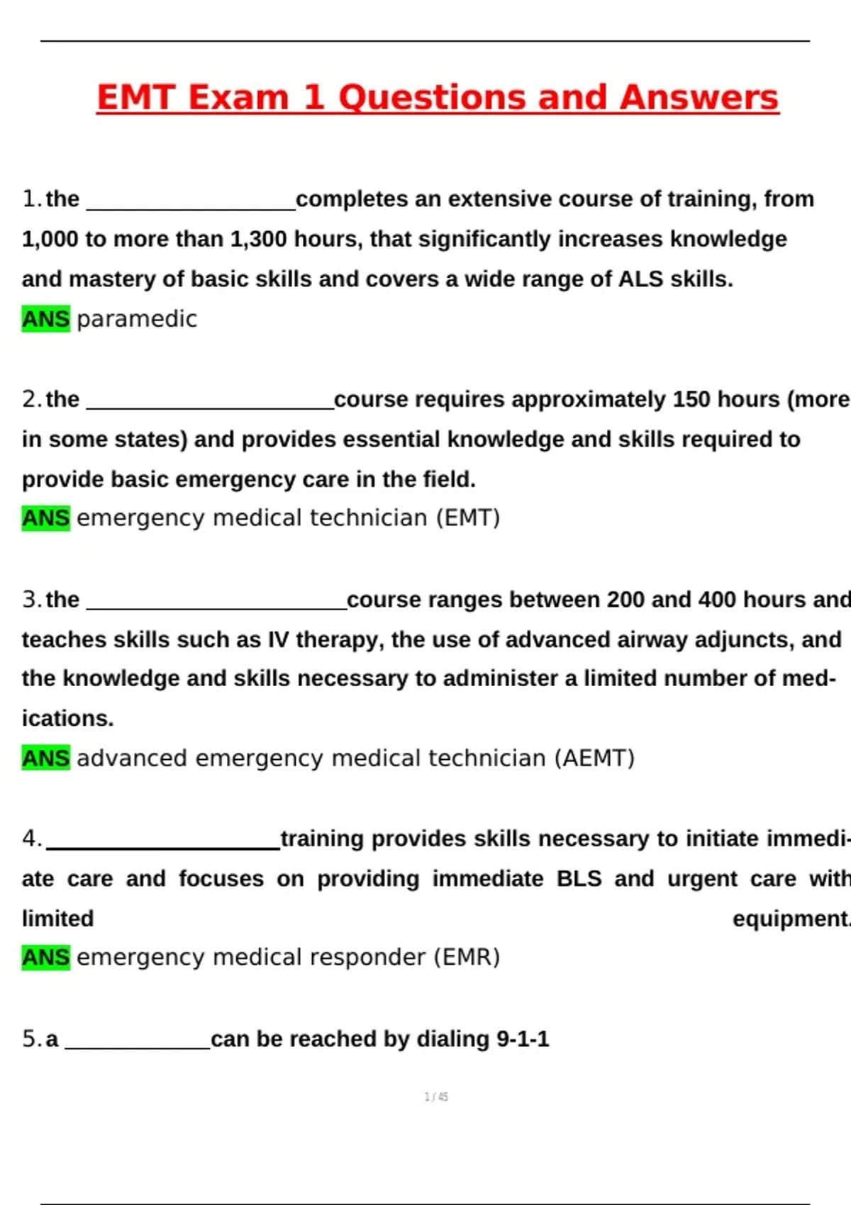EMT Exam 1 Questions Latest 2026 Actual Questions and Verified Answers (2026 / 2027) A+ Grade 100% Guarantee Verified by Experts EMT exam questions and correct answers, EMT practice test with answers, EMT 2025 exam prep, EMT 2026 updated study guide, EMT Block 1 triage quiz answers, EMT triage practice questions, EMT Chapters 1–32 study guide, EMT Exam 1 Chapters 1–5 questions, EMT Exam 1 practice questions, EMT HOSA EMT practice exam, EMT medical practice exam questions, EMT anatomy and physiology exam review, EMT medical terminology practice questions, EMT patient assessment Chapter 10 questions, EMT primary and secondary assessment exam, EMT emergency medical care fundamentals, EMT EMS systems Chapter 1 review, EMT intro to emergency medical care exam, EMT vital signs practice questions, EMT airway management exam prep, EMT oxygen therapy questions, EMT bleeding and shock practice, EMT trauma assessment exam prep, EMT medical emergencies practice questions, EMT pediatric patient assessment review, EMT geriatric care exam questions, EMT obstetric emergencies practice, EMT EMS operations exam review, EMT ambulance operations questions, EMT legal and ethical issues EMT exam, EMT documentation and reporting practice, EMT infection control exam questions, EMT anatomy physiology EMT test prep, EMT pharmacology basics exam review, EMT medication administration questions, EMT triage tagging practice exam, EMT disaster response questions, EMT mass casualty incidents exam, EMT NREMT practice questions, EMT cognitive exam prep 2025, EMT psychomotor exam review, EMT skills exam practice, EMT written EMT exam questions, EMT mock exam with rationales, EMT study guide PDF download, EMT exam cram review, EMT high-yield EMT questions, EMT full course review study guide, EMT comprehensive practice exam, EMT latest exam questions 2025, EMT verified answers study guide, EMT full practice and prep guide EMT Block 1 triage quiz, EMT triage practice questions, EMT Chapter 1 to 32 study guide, EMT exam questions and correct answers, EMT Chapter 1 EMS systems review, EMT intro to emergency medical care exam, EMT patient assessment Chapter 10 questions, EMT Exam 1 Chapters 1–5 practice, EMT Exam 1 questions and answers, EMT HOSA practice questions, EMT medical practice exam, EMT anatomy and physiology review, EMT medical terminology exam questions, EMT full EMT exam prep 2025, EMT updated study guide 2026, EMT practice test with answers, EMT certification exam prep, EMT first responder exam questions, EMT emergency care fundamentals review, EMT trauma assessment practice, EMT medical assessment exam prep, EMT scene size up questions, EMT primary assessment practice, EMT secondary assessment review, EMT vital signs practice questions, EMT airway management exam prep, EMT oxygen therapy questions