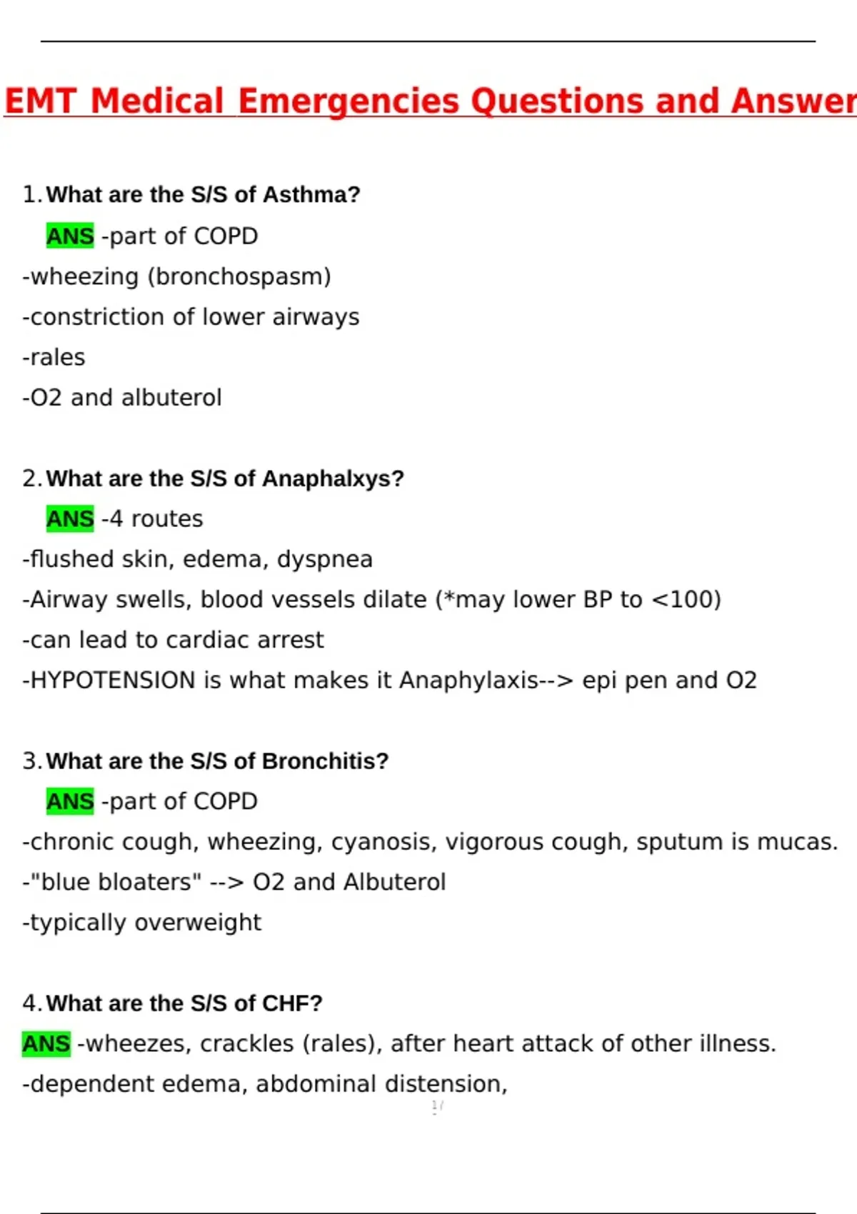 1.What are the S/S of Asthma?