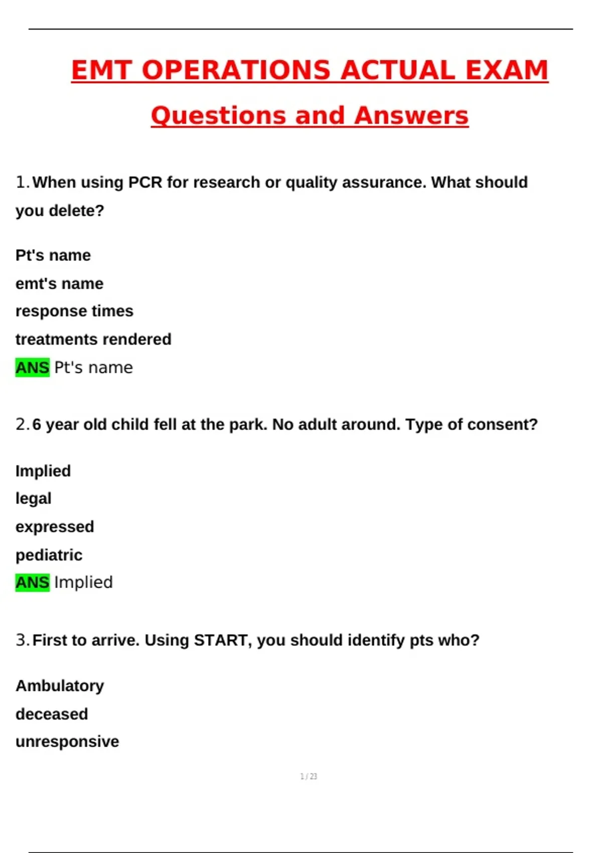 3.First to arrive. Using START, you should identify pts who?