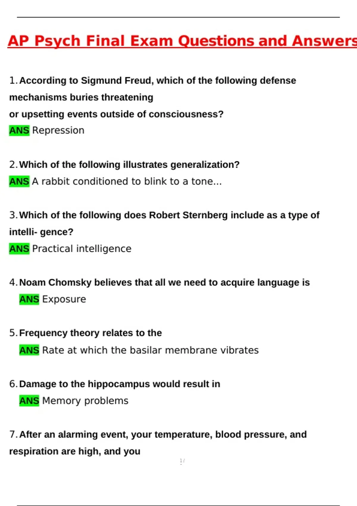 1.According to Sigmund Freud, which of the following defense