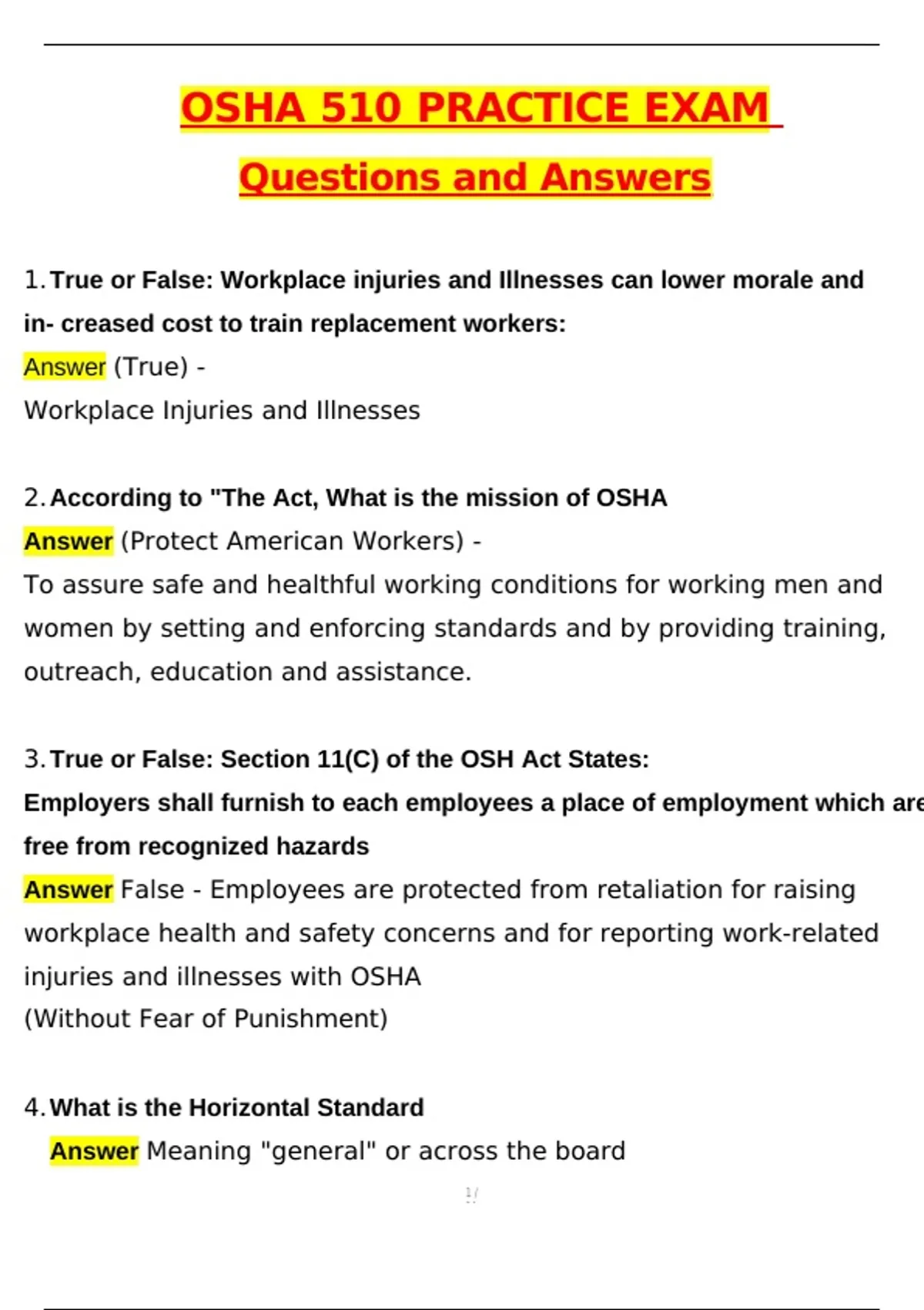 , 5.True or False: OSHA directives including Enforcement and Compliance