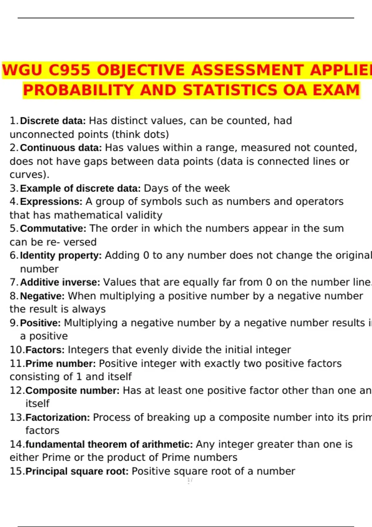 11.Prime number: Positive integer with exactly two positive factors