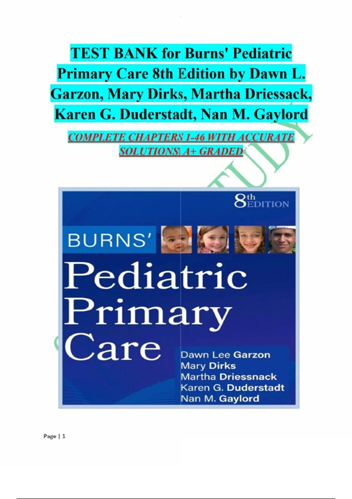TEST BANK for Burns- Pediatric Primary Care 8th Edition by Dawn L. Garzon, Mary Dirks, Martha Driessack, Karen G. Duderstadt, Nan M. G
